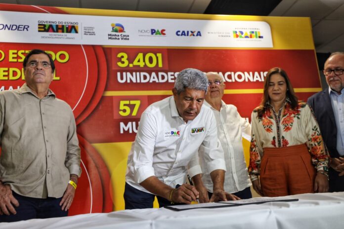 Mais 3.401 famílias baianas terão a oportunidade de realizar o sonho da casa própria com o anúncio da nova fase de obras do programa Minha Casa Minha Vida (MCMV), fruto de parceria do Governo do Estado com o Governo Federal. Nesta segunda-feira (1º), o governador Jerônimo Rodrigues e o ministro da Casa Civil, Rui Costa, autorizaram obras e firmaram compromisso para a construção de unidades de habitações em 57 municípios da Bahia, durante cerimônia no Centro de Convenções de Feira de Santana. O investimento anunciado foi de R$ 305,9 milhões.