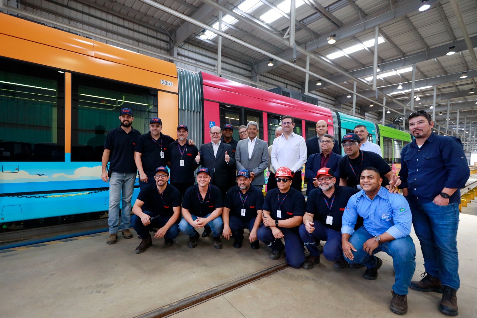 Mais uma etapa estratégica do cronograma de implantação do Veículo Leve sobre Trilhos (VLT) de Salvador e Região Metropolitana teve início nesta quarta-feira (10): estão sendo realizados os últimos ajustes técnicos e operacionais, além da pintura e plotagem de um dos trens do novo modal. A atividade foi acompanhada de perto, na fábrica da Construcciones y Auxiliar de Ferrocarriles (CAF), localizada em Hortolândia (SP), pelo governador Jerônimo Rodrigues e uma comitiva de lideranças comunitárias do Subúrbio de Salvador.