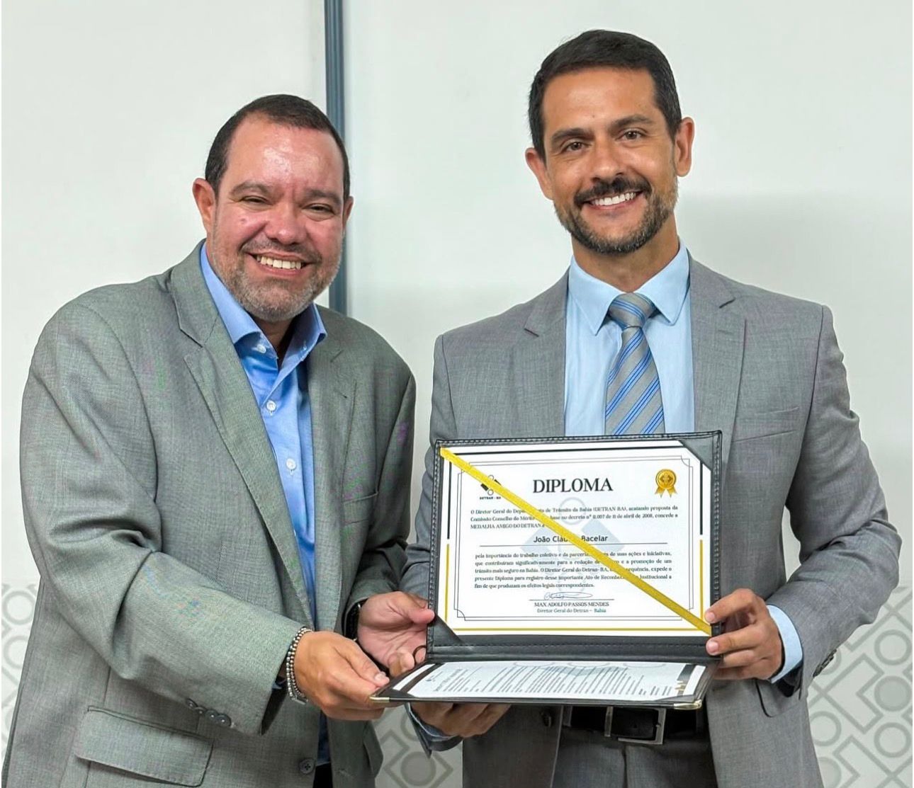 A honraria foi entregue durante solenidade realizada pelo Departamento Estadual de Trânsito da Bahia, que destacou personalidades e instituições comprometidas com a valorização da vida nas vias públicas.