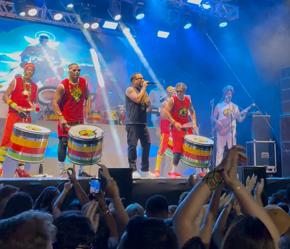 Tudo isso acontece na Praça das Artes, no coração do Pelourinho. Um espaço que acolhe. Dá para assistir ao show, dançar, circular, se divertir sem aperto. Bem policiado, seguro, familiar. Um lugar onde crianças, adultos, moradores e visitantes convivem olhando a banda de perto, sentindo cada batida, cada canto, cada resposta do tambor.